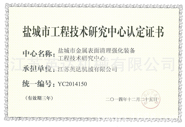公司率先通過ISO9001:2008質(zhì)量管理體系認(rèn)證、ISO14001:2004環(huán)境管理體系認(rèn)證。擁有一支專業(yè)的技術(shù)團(tuán)隊(duì),先后取得了網(wǎng)帶通過式拋丸機(jī)、新型機(jī)械回收噴砂房、輥道通過式重鋼拋丸機(jī)等三十項(xiàng)產(chǎn)品專利和10項(xiàng)江蘇省高新技術(shù)產(chǎn)品。(注:各項(xiàng)產(chǎn)品專利及所有證書詳見企業(yè)官網(wǎng):http://ifabbroweb.com/或阿里誠信檔案)