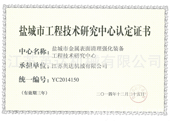 公司率先通過ISO9001:2008質(zhì)量管理體系認(rèn)證、ISO14001:2004環(huán)境管理體系認(rèn)證。擁有一支專業(yè)的技術(shù)團(tuán)隊(duì),先后取得了網(wǎng)帶通過式拋丸機(jī)、新型機(jī)械回收噴砂房、輥道通過式重鋼拋丸機(jī)等三十項(xiàng)產(chǎn)品專利。(注:各項(xiàng)產(chǎn)品專利及所有證書詳見企業(yè)官網(wǎng):http://www.ifabbroweb.com/或阿里誠(chéng)信檔案)